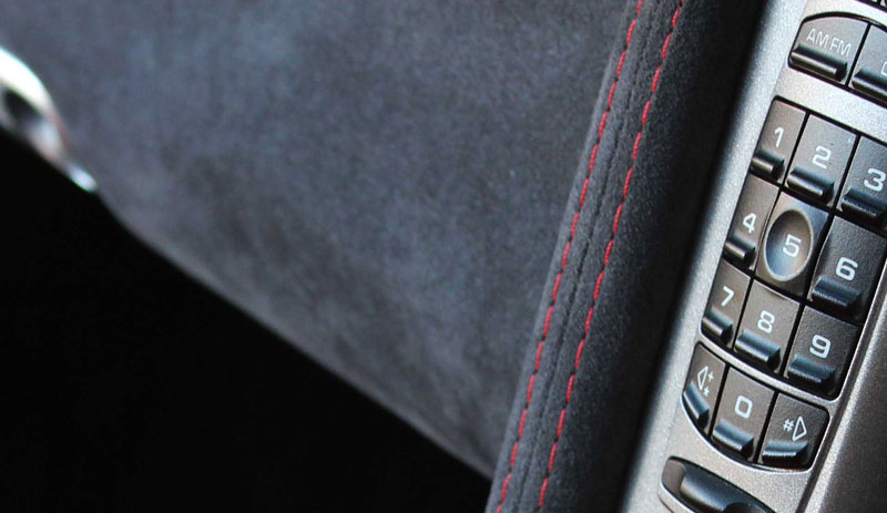 Application - Alcantara was made popular and desirable thanks to its application on most exciting, fast and track oriented Porsche models like GT3 and GT2. Initially applied to steering wheels, gear levers and handbrakes for its technical high grip properties and similar look to Suede - that was used on most racing cars steering wheels. Now Alcantara can be found on seats, dashboards and door cards thanks to its unique look and great contrast it provides against leather and plastic surfaces.